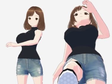パイアールフロンティア 黒いノースリーブにデニムのショートパンツのお姉さん(セリフなし 3DCGモデル イラスト集)